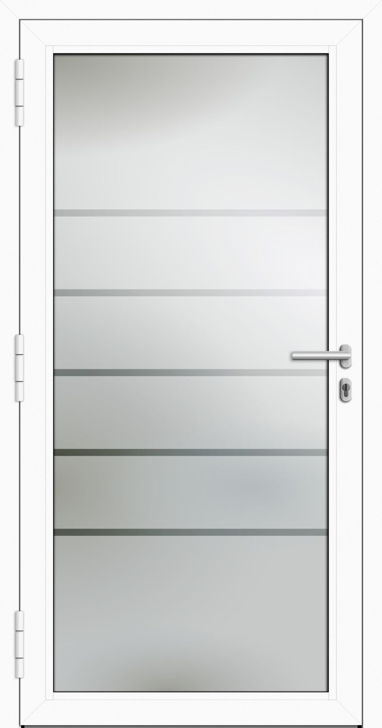 Eine Vollglas Haustür für den maximalen Lichteinfall in Ihrem Hauseingangsbereich. Unsere Aluminium-Glas Haustür "ELIF" 90 mm überzeugt durch ein ästhetisches Design, einen zuverlässigen Einbruchschutz und einer Fertigung auf Wunschmaß. Bestimmen Sie cm-genau das passende Maß für Ihren Hauseingang. Im Detail heißt das eine Breite von 90 cm - 120 cm und eine Höhe von 190 cm - 250 cm. Bei der Wahl der passenden Farben können Sie aus den modernen Farbtönen Verkehrsweiß, Anthrazitgrau, Moosgrün, Stahlblau, Tannengrün, Hellelfenbein, Graualuminium, Anthrazitgrau/Eisenglimmer, Rotbraun oder Signalschwarz auswählen. Alle zur Auswahl stehenden Verriegelungen bieten einen optimalen Einbruchschutz. Zusätzlich können Sie aus den smarten Funktionen Fingerscanner Ekey xLine, Codetaster inkl. Fingerscanner SOREX UNILOCK 2.0, Fingerscanner ekey dLine [weiss] wählen. Das Modell ELIF kann mit einer Öffnungsrichtung nach außen oder innen bestellt werden. Besondern bei engen Eingangsbereichen gibt es Fälle, bei denen eine nach außen öffnende Haustür von Vorteil ist. Nutzen Sie diese Option für Ihr Bauvorhaben. Um die Konfiguration abzurunden, fehlt noch das passende Griffset. Hier stehen Ihnen ebenfalls verschiedenen Optionen aus Edelstahl Stoßgriffen und Drückern zur Konfiguration zur Auswahl. Zuverlässigkeit und Qualität Made in Germany vom anspruchsvollen Hersteller für den anspruchsvollen Bauherren oder die Bauherrin!