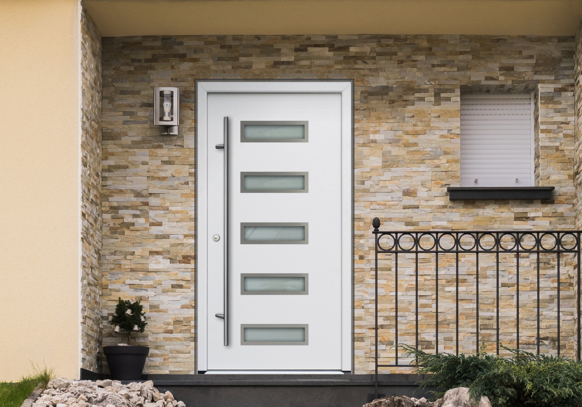 Außenansicht Aluminium Haustür mit Glas Weiß
