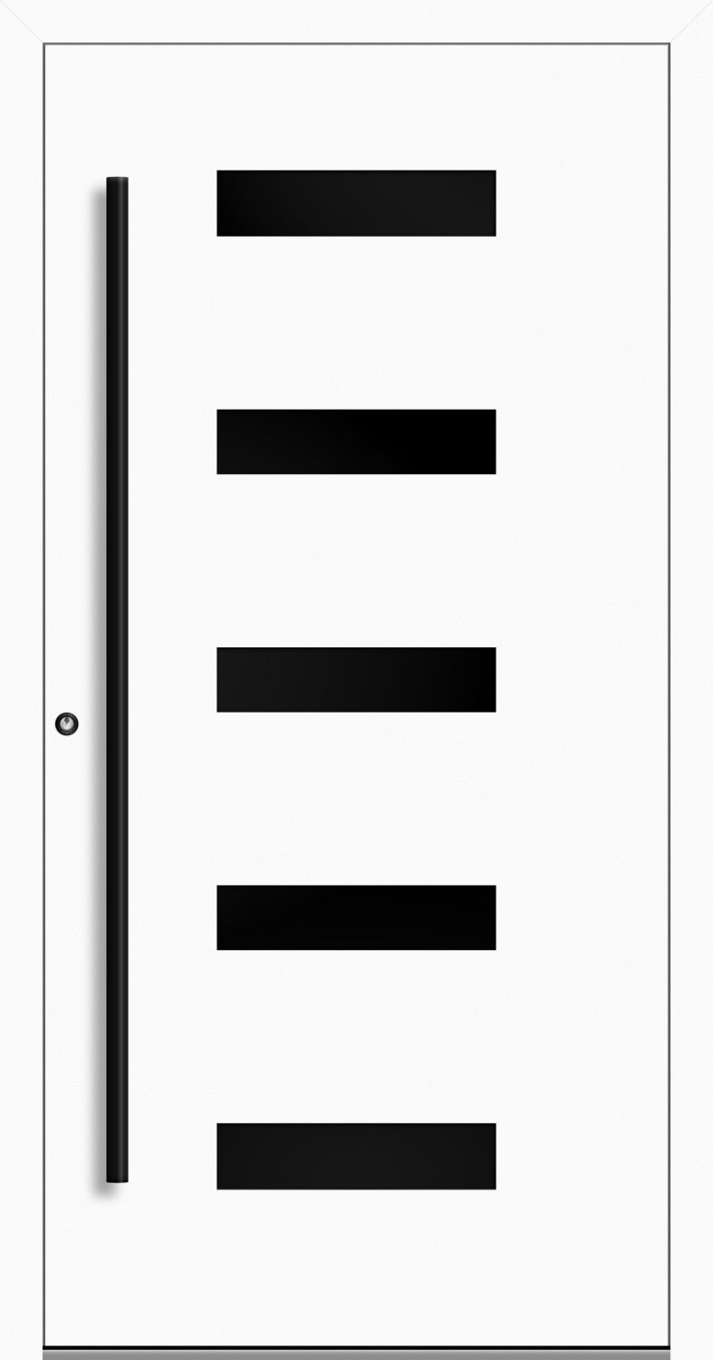 Die Aluminium Haustür "AGADA" 90 mm RC2 BLACKLINE bietet Ihnen verschiedene Gestaltungsmöglichkeiten für fast jede Anforderung. Im Mittelpunkt der BLACKLINE-Serie steht unverkennbar Ihre schwarze Ausstattung, die die AGADA perfekt mit ihren Farben hervorhebt. Unterstreichen Sie die schwarzen Akzente mit Tönen aus den Farbräumen Blau, Beige, Braun, Grau, Grün, Schwarz oder Weiß. Mit einer cm-genauen Fertigung ermöglichen wir es Ihnen, exakt das richtige Maß zu bestellen. Wählen Sie einfach Ihre individuell benötigte Breite von 90 cm bis 120 cm und Höhe von 190 cm bis 250 cm. Die Eingangstür eignet sich aufgrund ihres sehr guten Wärmedämmwertes von 0,98 W/m²K besonders gut für einen energiewirksamen Neubau oder Renovierung. Dank der 4-fach Wärmeschutzverglasung in Satinato (Milchglas), Reflex Grey Glas oder Graphit Grau getöntes Glas dient die Tür als zusätzliche Tageslichtquelle. Die Eigenschaft der Widerstandsklasse RC2 sorgt für ein sicheres Gefühl in Ihrem Zuhause. Dafür sorgt unter anderem die 5-fach Schwenkhakenverriegelung (Winkhaus hookLock M), 3-fach Bolzenverriegelung mit Automatikschloss, mechanisch (G-U Secury Automatic) oder 3-fach Bolzenverriegelung mit Motorschloss (G-U SECURE connect), die durch smarte Funktionen Fingerscanner, Codetaster oder APP-Steuerung ergänzt wird und für mehr Komfort sorgt!