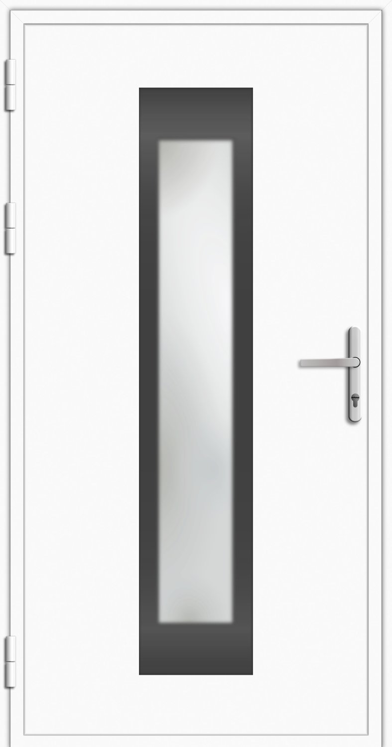 | Aufbau Türflügel | Die Tür ist mit einem Türflügel mit beidseitiger Einsatzfüllung versehen, umlaufende Stahlverstärkung im Inneren des Füllungsrahmen, 1,5 mm Aluminiumpanel außen, 1,5 mm Aluminiumpanel innen, 24 mm wärmegedämmte PVC-Sandwichfüllung (hochwertiger XPS-Kern) |