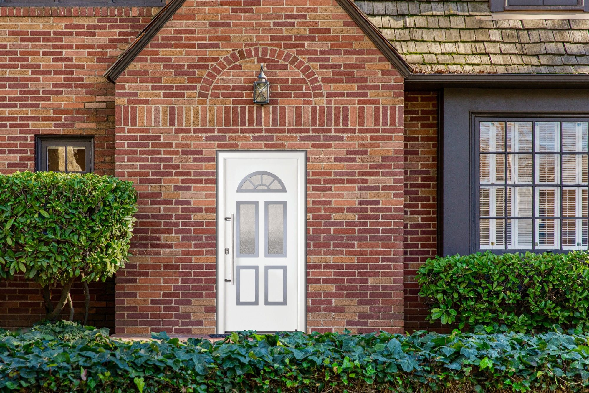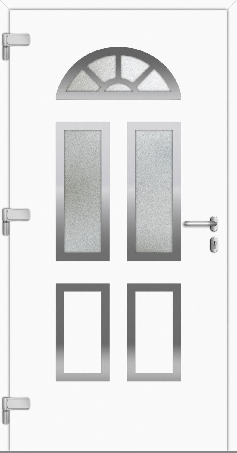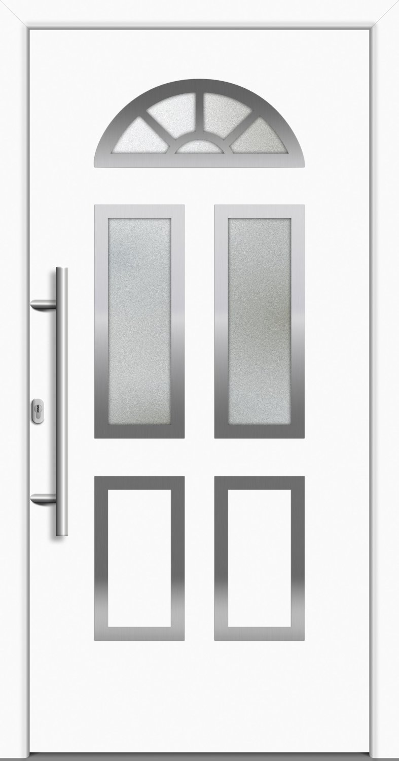 Eine Haustür, die durch Qualität Made in Germany überzeugt. Unsere Aluminium Haustür "SIMONE" 79 mm flügelüberdeckend eignet sich durch Ihren klassischen Look hervorragend für Altbauten oder Häuser im Landhausstil. Gefertigt wird das Modell in einem zeitlos schickem Verkehrsweiß, Anthrazitgrau oder Silbergrau. Unsere SIMONE 79 mm lässt mit Ihren Glaselementen und einem Sprossenfenster in Klarglas oder Ornamentglas 504 Ihren Eingangsbereich in neuem Glanz erstrahlen. Für einen guten Einbruchschutz sorgt die 3-fach Schwenkhakenverriegelung und eine zusätzliche Aushebelsicherung auf Bandseite. Sie können sich diese Haustür cm-genau nach Maß bestellen. Dies ist besonders bei Renovierungen von Vorteil. Mit einem 1,00 W/m²K erzielt die Tür zudem eine gute Dämmung und Sie können Energiekosten sparen.