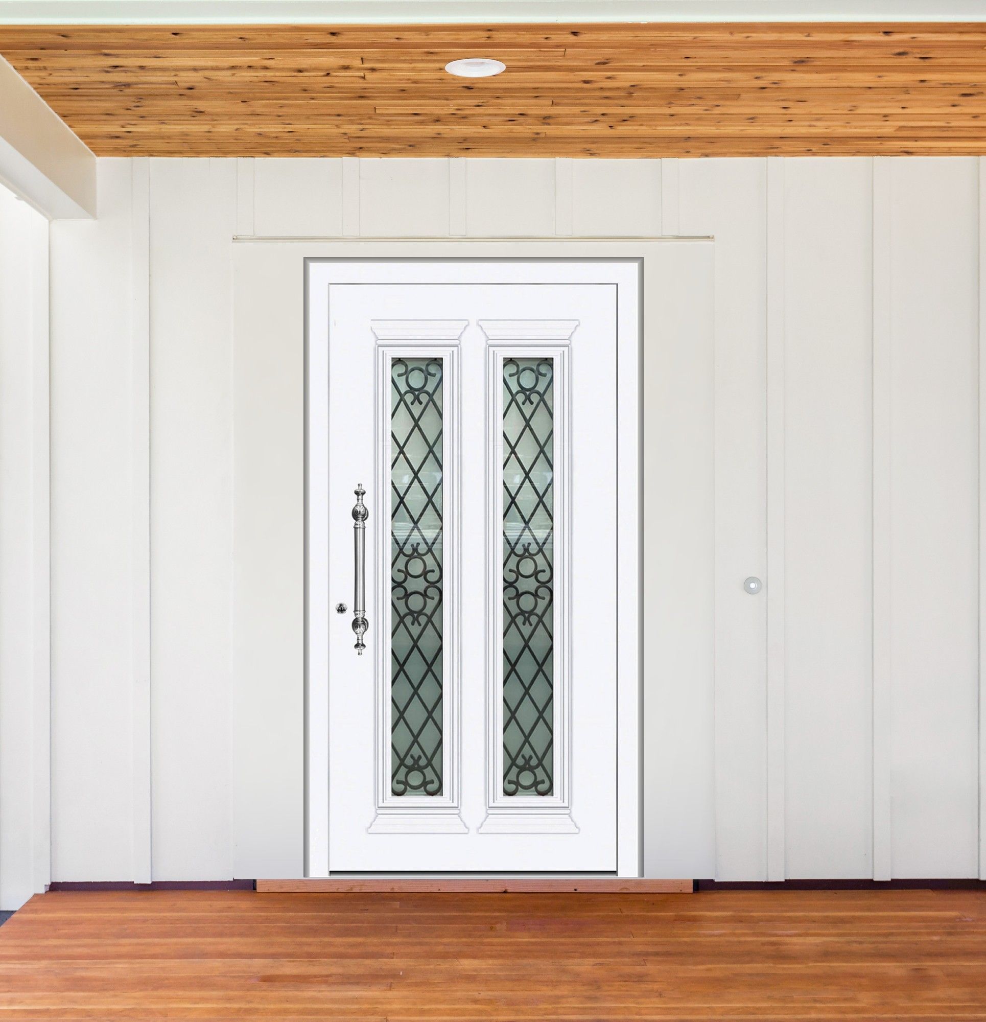 | Glasart | 4-fach ISO Wärmeschutz Satinato (Milchglas) mit Gusseisenverzierung Verbundsicherheitsglas (VSG) |